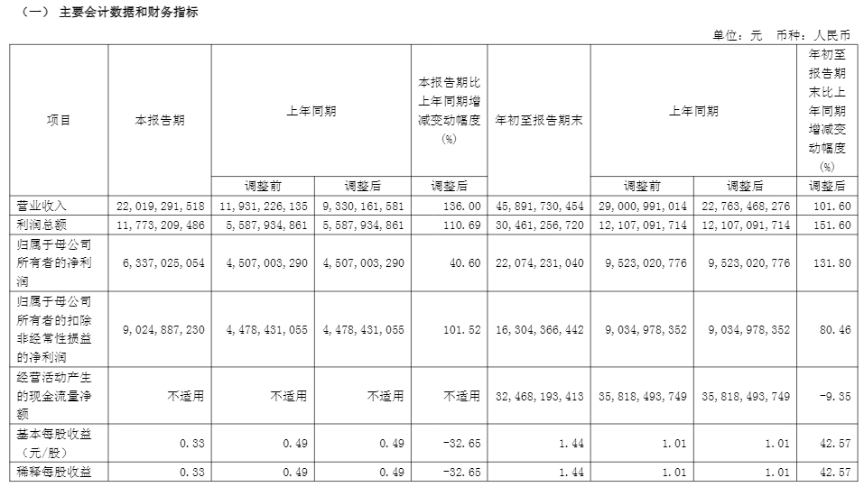 10月30日,国泰海通证券股份有限公司(下称“国泰海通”,601211.SH,02611.HK)发布《2025年第三季度报告》,公告显示,2025年前三季度,国泰海通营业收入为458.9亿元,同比增长101.6%;归母净利润220.7亿元,同比增长131.8%;基本每股收益1.44元/股,同比增加42.57%。