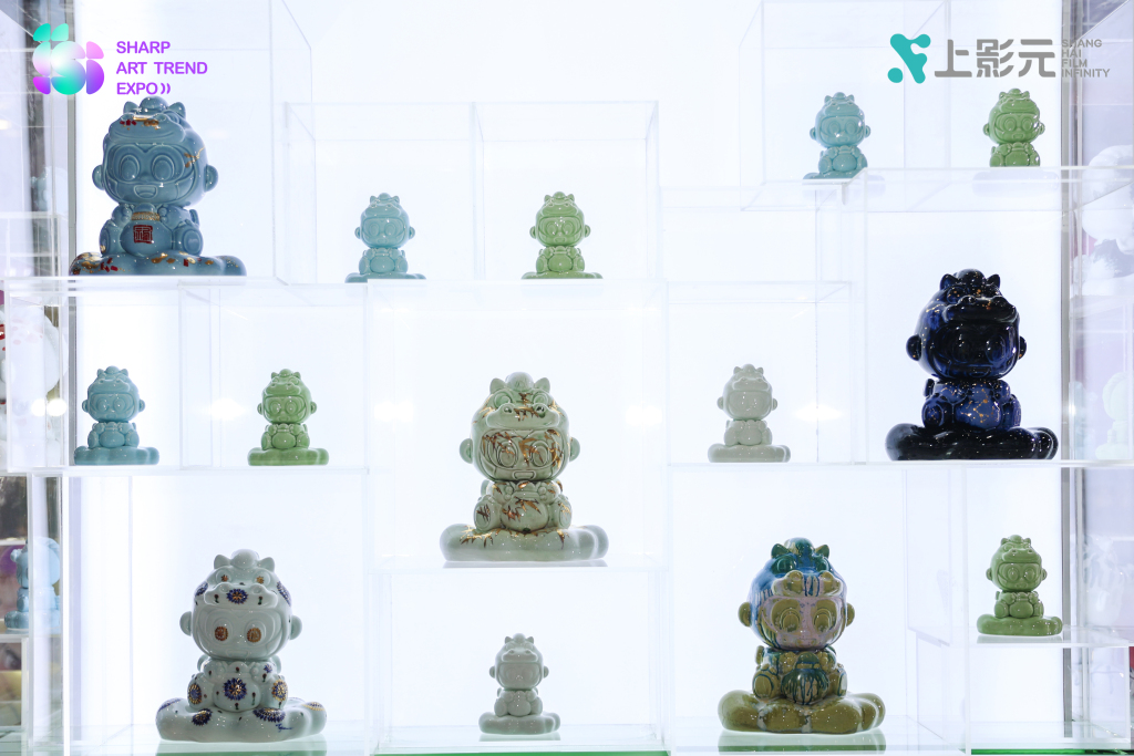 展会期间,上影元发起“元·创未来 共创无界”计划,联动多位新锐艺术家,带来《大闹天宫》《哪吒闹海》《葫芦兄弟》《黑猫警长》等经典动画形象与潮流艺术的创新融合。现场集中呈现了本届共创计划的近百款优秀作品,基于《大闹天宫》孙悟空与天马形象创作的“马上封侯-釉色新境”陶瓷系列备受关注。