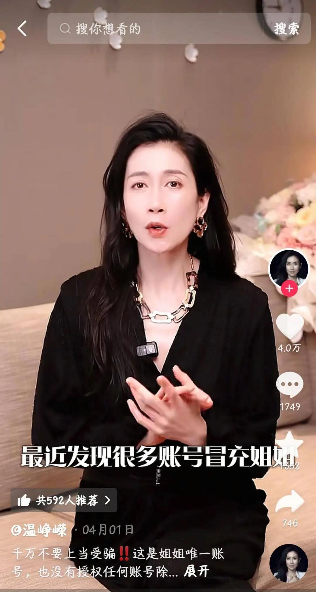 今年 4 月 1 日,温峥嵘发视频打假,明确地表示自己只有一个账号直播,她和团队也注意到了有很多账号冒充她开直播、打广告,她也支持粉丝看到了盗播的直播间进行举报。