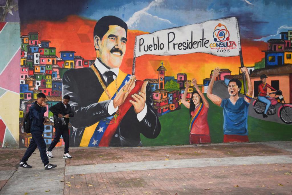 9 月 22 日,在委内瑞拉首都加拉加斯,行人从街头支持马杜罗总统的宣传标语前走过。新华社发(马科斯 · 萨尔加多摄)