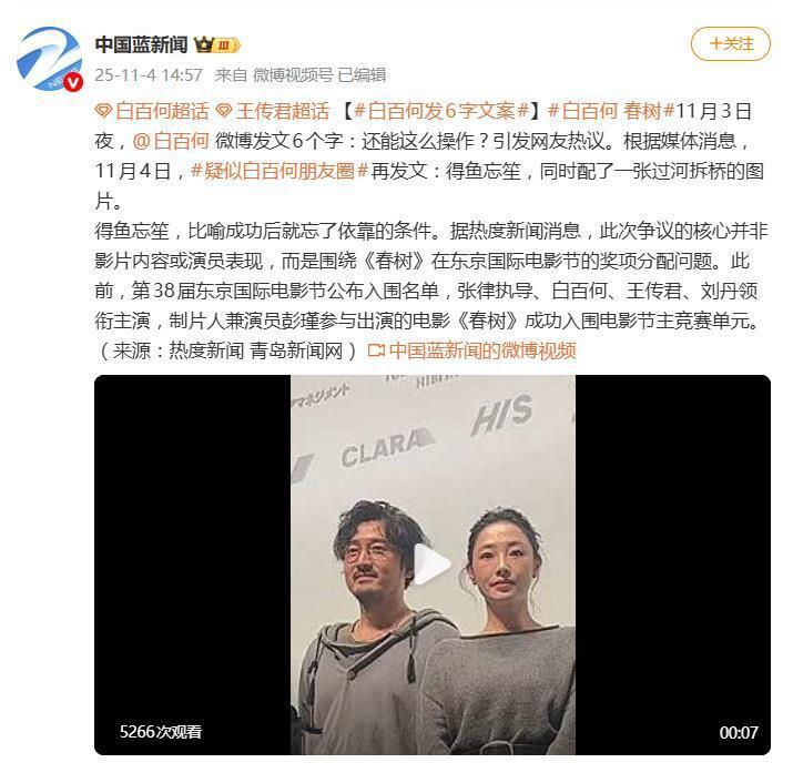 更耐人寻味的是白百何的反应。在颁奖前两日(11 月 3 日),她突然发布微博 " 还能这么操作 …",随后在朋友圈配图 " 得鱼忘筌 "" 过河拆桥 ",被广泛视为对评奖结果的公开质疑。作为为角色连 " 背影弧度 " 都精心打磨的一番主演,她此前曾公开表达对奖项志在必得,最终却未获奖且缺席闭幕式——这一连串动作,几乎将 " 意难平 " 写在了脸上。