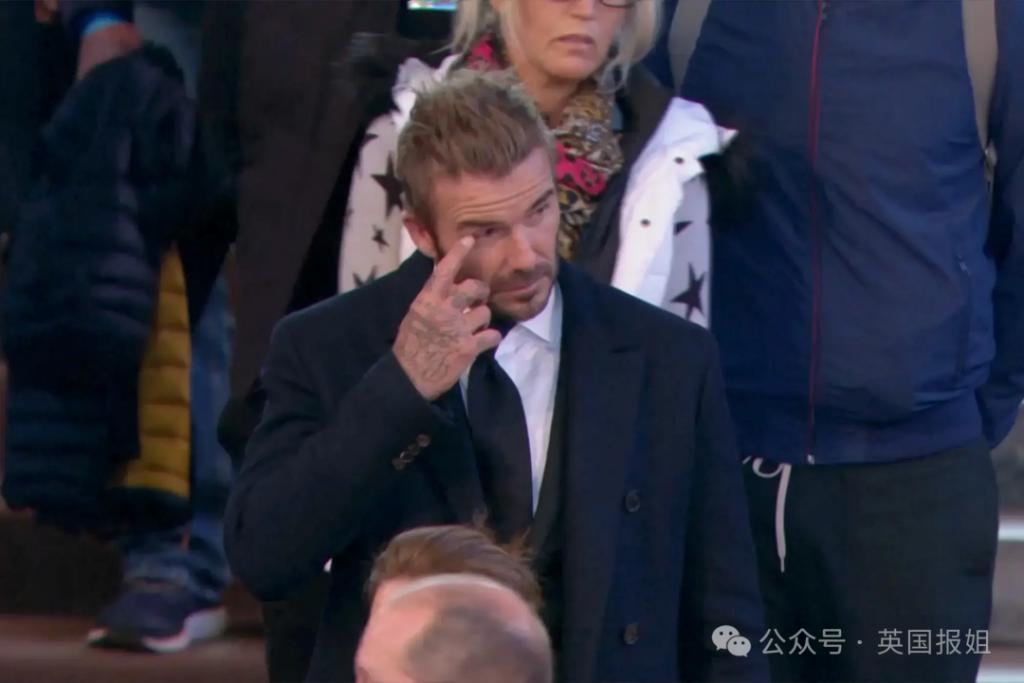 小贝对王室的尊敬有目共睹,2022 年女王逝世后,他在灵柩前排了 12 个多小时的队,送别女王最后一程。