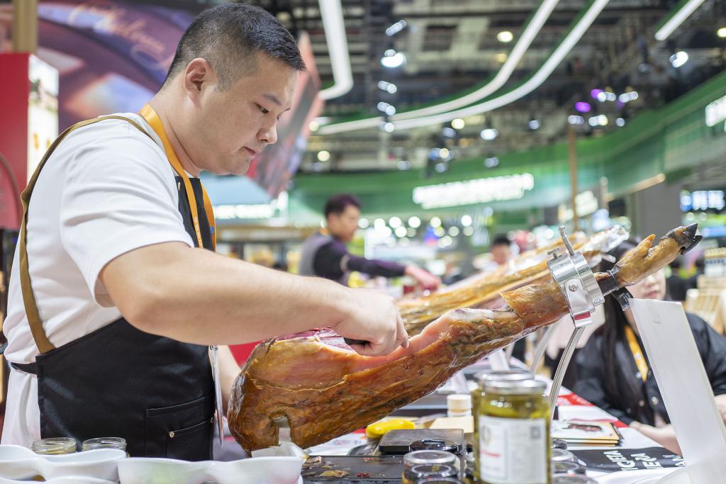 11 月 5 日,第八届中国国际进口博览会在上海拉开帷幕。西班牙火腿、东南亚热带水果、新西兰乳品、德国智能清洁设备等齐聚一堂,全球好物与中国市场 " 双向奔赴 ",共绘创新、多元的消费新图景。