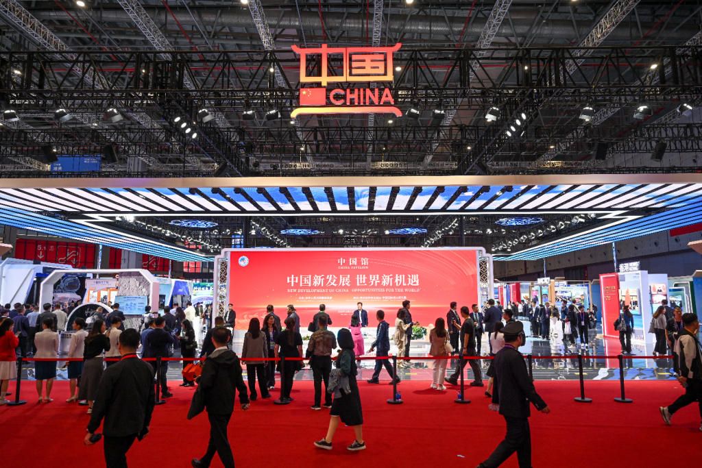 2025年11月5日,国家会展中心(上海),众多参展商在中国馆参观。澎湃新闻记者 朱伟辉 图