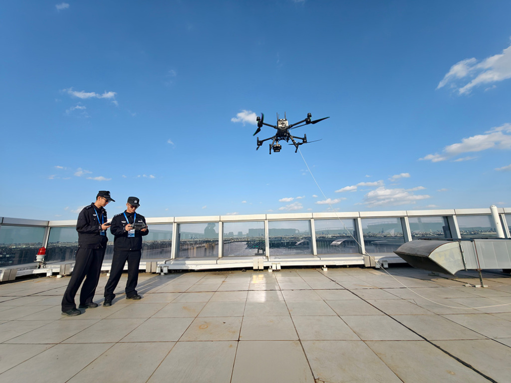 民警在点位布设系留无人机 上海市公安局供图