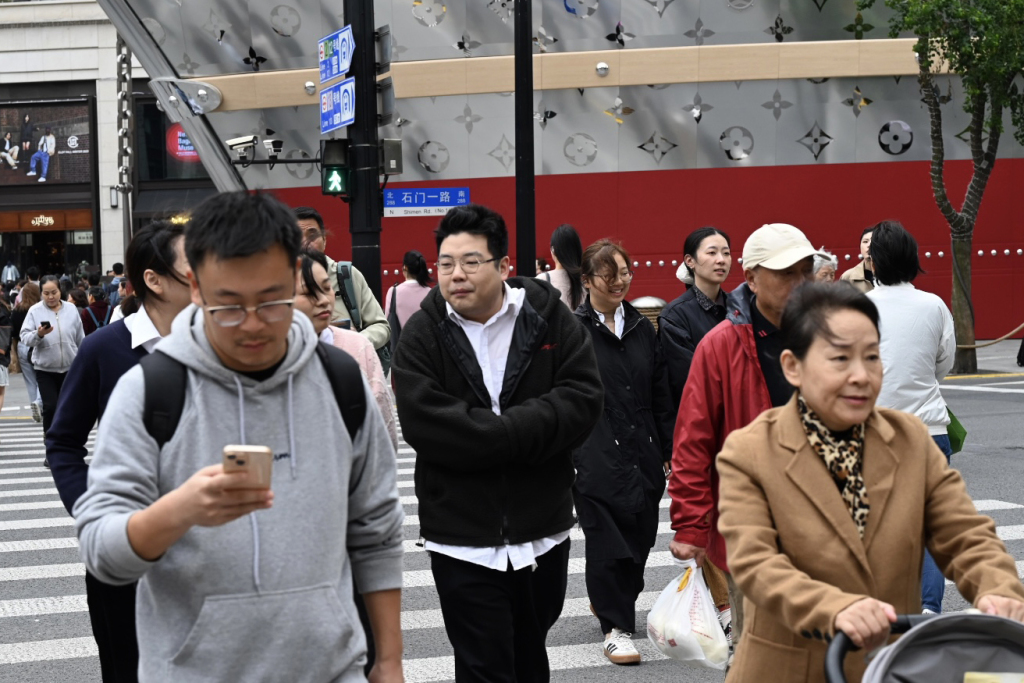 11月12日 ,上海南京西路,行人换上厚厚的皮衣。澎湃新闻记者 吴栋 图