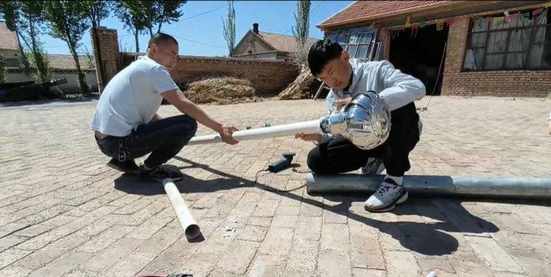 说干就干,在爸爸的帮助下,父子俩找来钢管、废旧塑料瓶,捣鼓出 " 第一代 " 装置——顶部装风扇将风导入钢管底部,利用冷凝结水。想法很美好,可实践却不是一帆风顺,四次试验下来,钢管底部连一滴水珠都没有。