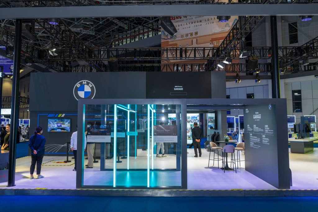 第八届中国国际进口博览会,宝马集团亚太技术中心展台,围绕宝马集团初创车库设置了初创公司展示区域。 雷云 图