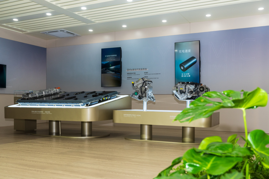 电机需要支持高速性能的连贯性。在这里,记者看到了前桥紧凑异步电机和后桥励磁同步电机。它们是BMW新世代电驱系统的组成部分。工作人员介绍, 后桥励磁同步电机通过外部直流电流在转子绕组中产生磁场,而非依赖永磁体,能让定子与转子的电流精准配合,实时调节磁场强度。它不存在永磁体退磁问题,兼具磁场可调、无需稀土材料的优势,可在大马力输出场景下实现高精度控制。无论加速行驶还是减速能量回收,都能保证整车运行的顺畅与安全。据了解,这套新的电机组合亮点突出,两者协同发挥了异步电机的高可靠性与励磁同步电机的精准控制优势。其将为未来纯电车型实现能量损耗减少 40%、重量减轻 10%,整车效率提升 20% 的显著成效。