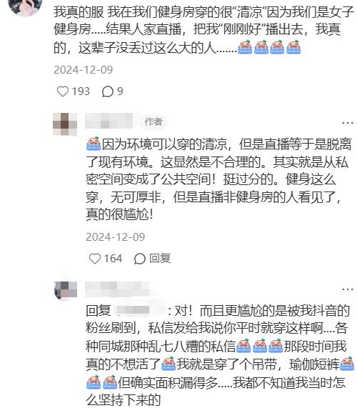 有网友去健身被直播出去后,被自己的粉丝刷到了,紧接着就收到了很多乱七八糟的私信,不怀好意地揶揄她的穿衣风格。