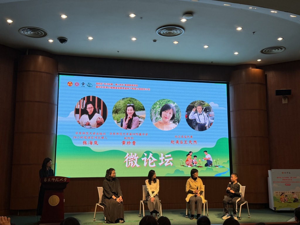启动仪式上,华东师范大学妇委会常务副主任、工会副主席刘婕向学员代表赠送了由“家+书屋”精心挑选的家庭教育经典书籍。在随后的微论坛中,张海岚与华东师范大学附属第四中学副校长黄珍青、社区家庭代表赵美和王天然,围绕“家+书屋在社会家庭教育中应发挥的作用”“构建家校社协同的家庭教育生态”等话题展开探讨。