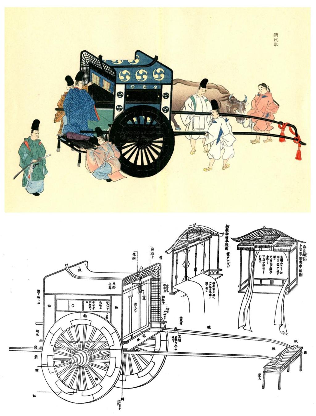再往前追溯,奈良时代的天皇乘坐辇舆,而贵族官员则一般骑马。然而,在平安京逐渐有步道和车道的区分,作为乘坐车的牛车出现。换言之,《日本后纪》弘仁六年(815)十月条有如下记载: