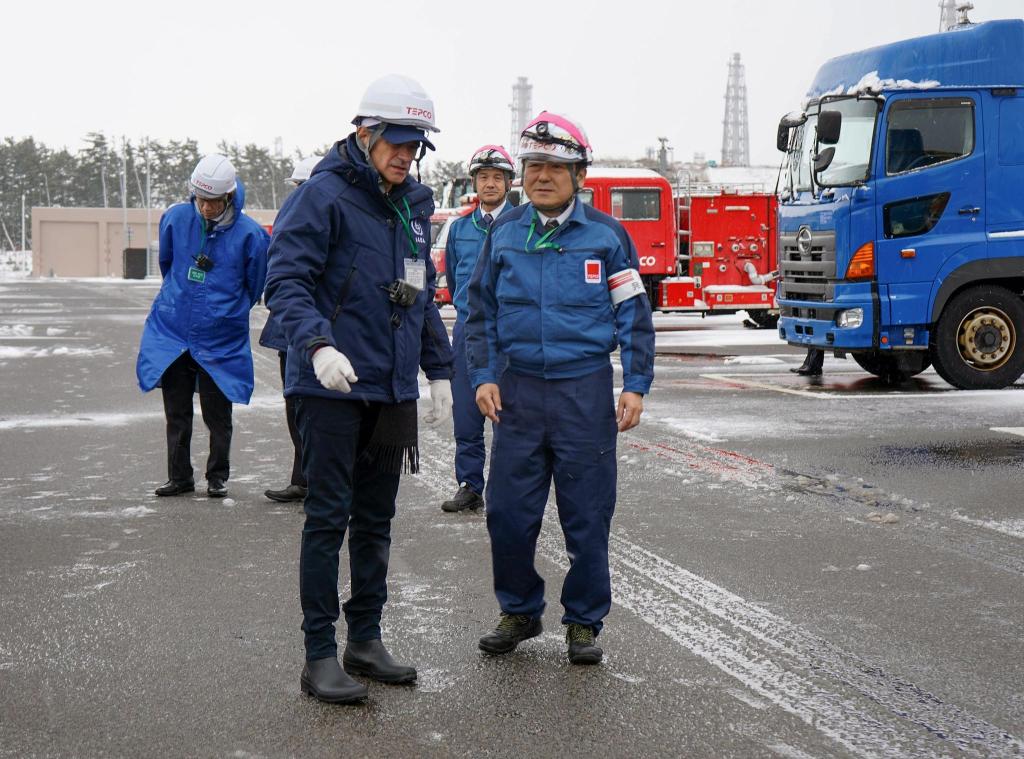 当地时间2025年2月18日,日本,国际原子能机构总干事格罗西(前排左)访问柏崎刈羽核电站。视觉中国 图