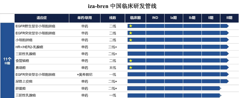 界面新闻注意到,据百利天恒今年中报,其有15款创新药处于临床试验阶段,3款已进入III期注册临床。其中iza-bren共开展40余项临床研究,包括3项全球关键注册临床、11项中国III期临床,覆盖多种肿瘤。