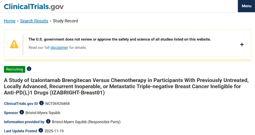 不过当下,iza-bren的全球开发也已有进展。今年10月,百利天恒公告称,该药的全球II/III期关键注册临床试验IZABRIGHT-Breast01已达成里程碑事件,正式触发与BMS合作协议项下第一笔2.5亿美元的近期或有付款条件,其全资子公司SystImmune将于近期收到款项。