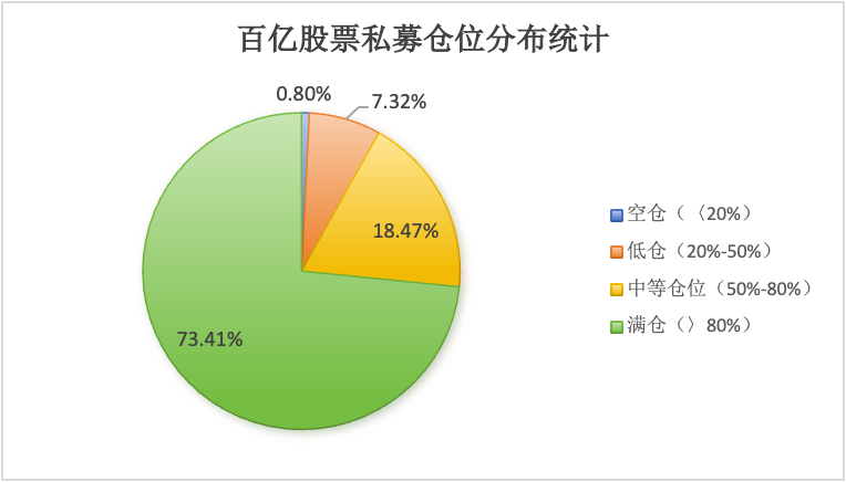 百亿私募方面,满仓百亿股票私募占比大幅提升至73.41%,对应中等仓位百亿股票私募占比显著下降至18.47%,大量中等仓位百亿私募已将仓位进一步提升至满仓水平。与此同时,空仓百亿股票私募也在积极调整仓位、向低仓水平靠拢,目前低仓百亿股票私募占比为7.32%,空仓占比仅余0.80%。