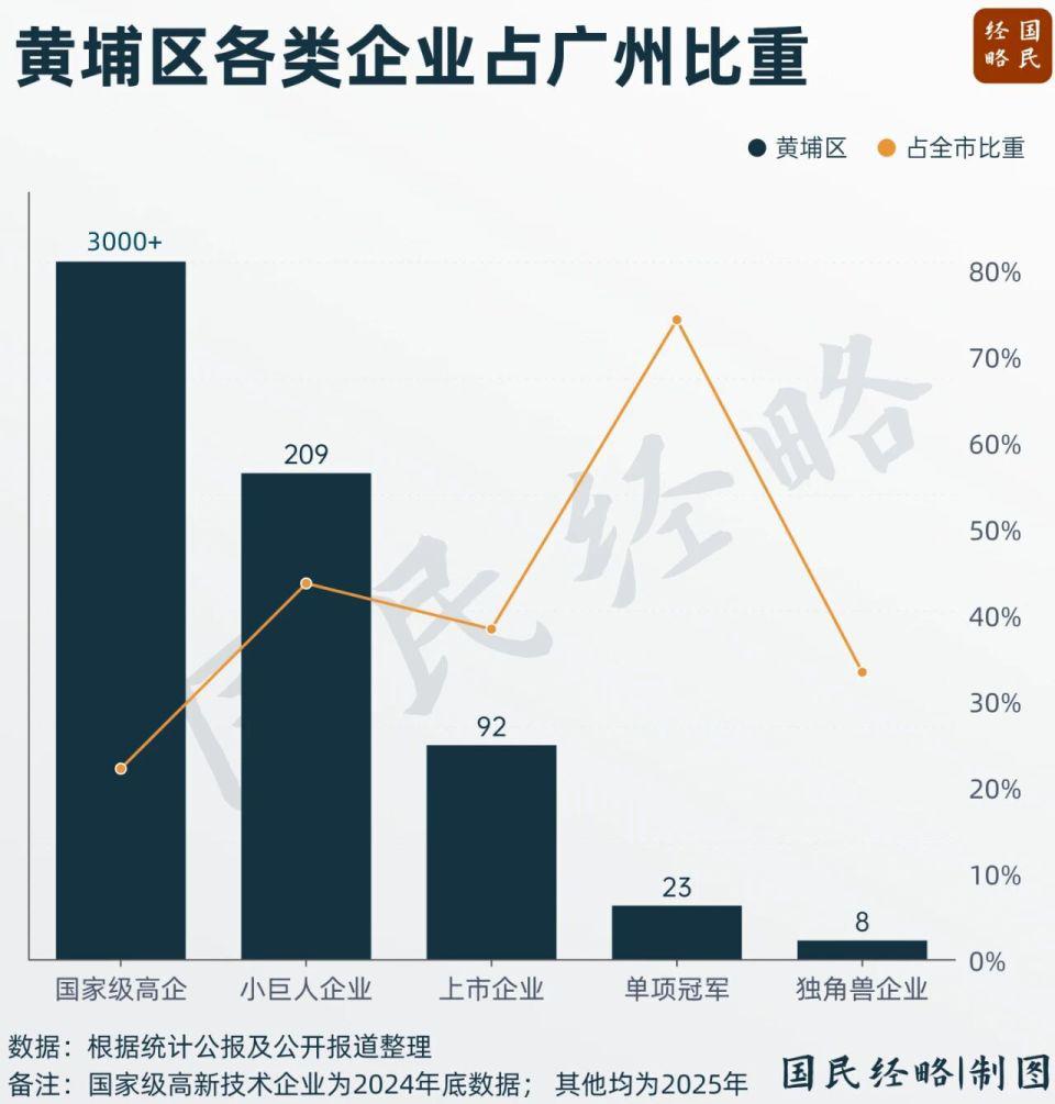 客观而言,由于历史因素,重点高校密集度不及京沪众多教育大区,但黄埔区拥有庞大的科技企业矩阵。