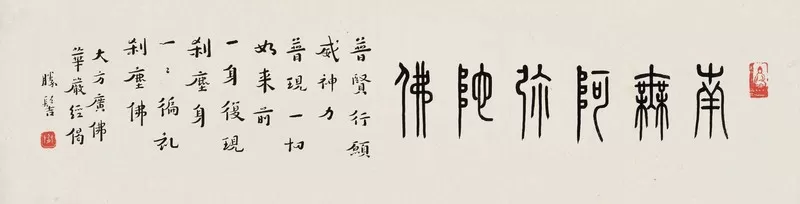 “纪念弘一法师诞辰145周年”专题取得100%成交的佳绩,五件作品总成交937.25万元。其中,《篆书“南无阿弥陀佛”》横披以345万元成交,为低估价的43倍;《行书楞严经》以230万元成交,为低估价的7.6倍。