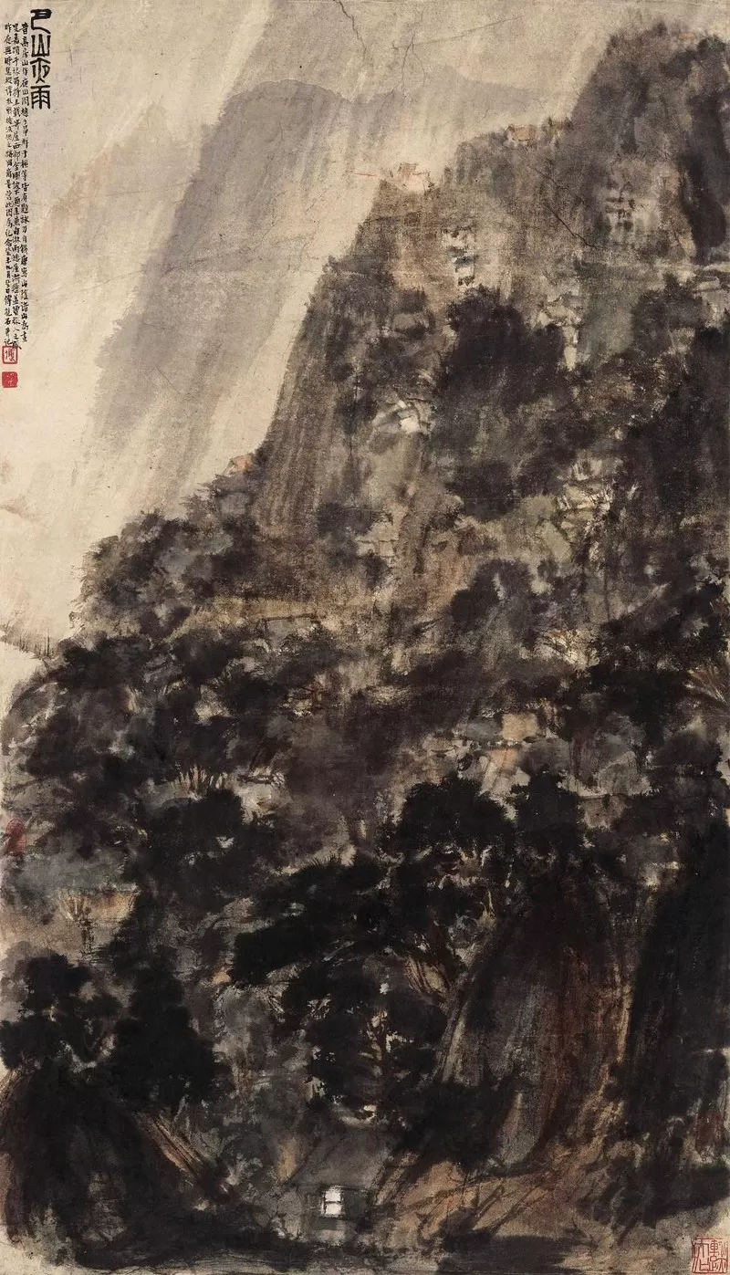 在“大观·近现代”专场中,包括傅抱石、齐白石、张大千、徐悲鸿等名家精品齐聚,成交率高达85%。傅抱石寓居重庆金刚坡时的巅峰之作《巴山夜雨》 以2875万元领衔全场。这幅创作于1943年的作品将李商隐诗句中的羁旅愁思与家国命运熔于一炉,代表了画家独特的艺术语言和“抱石皴”技法的成熟。