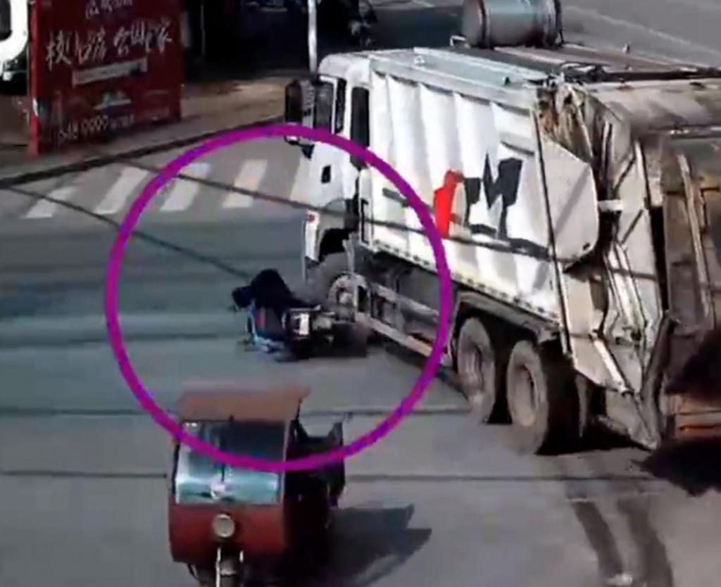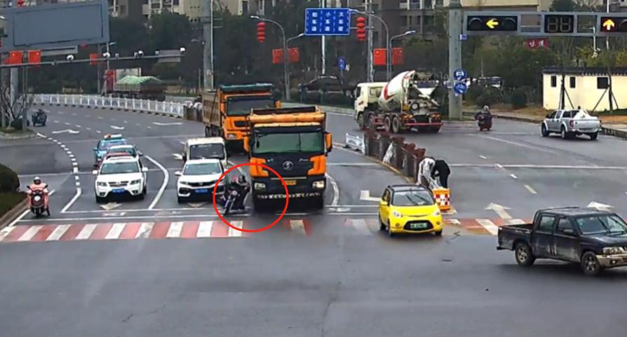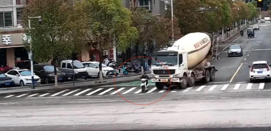 电动车骑行驶入大车盲区,瞬间被“吞”!重要提示