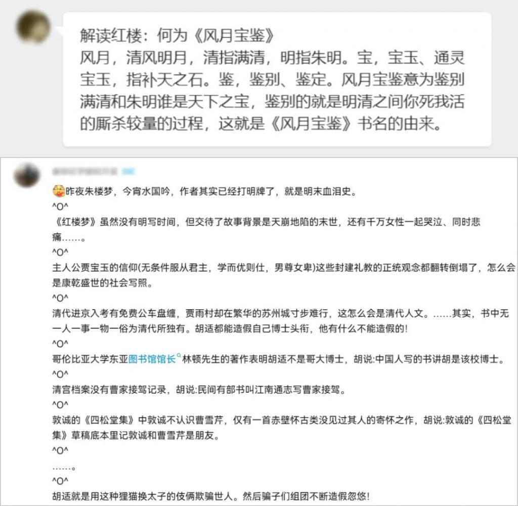 " 红迷会 " 账号整理的部分 " 反清悼明 " 言论 / 图源:红迷会公众号