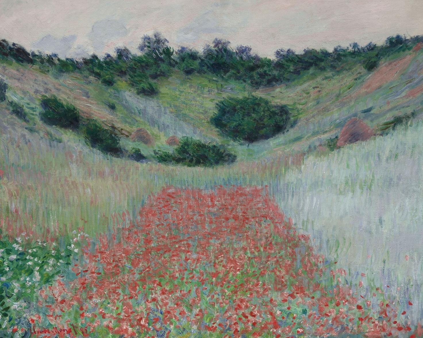 《吉维尼山谷附近的罂粟田》莫奈,1885年,布面油画