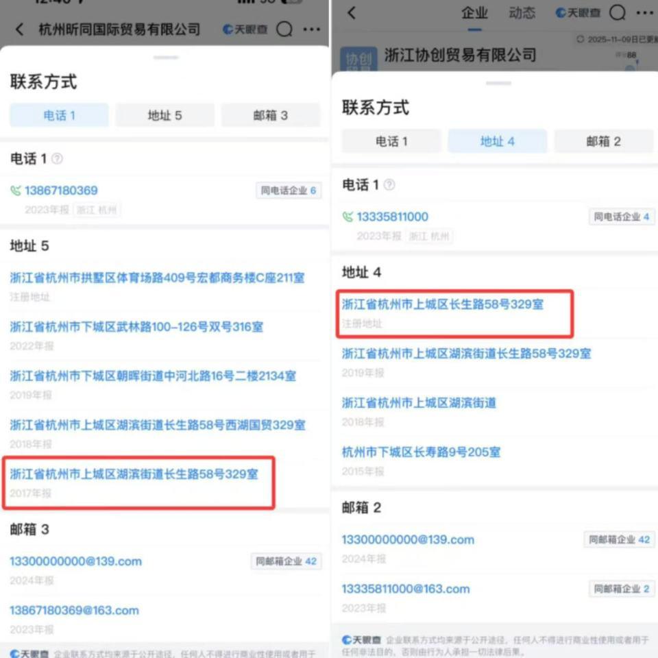 杭州昕同、浙江协创注册地址 图片来源:天眼查截图