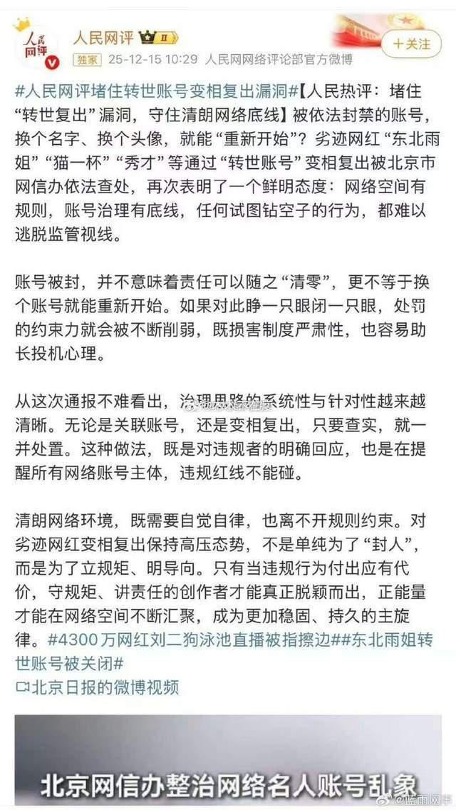 " 刘二狗 " 事件并非孤例。它再次为所有内容创作者与平台敲响了警钟:在追求流量与热度的道路上,社会责任与法律底线是绝不可逾越的红线。平台的监管不能总是 " 慢半拍 ",处罚措施更须有足够的惩戒力,以儆效尤。