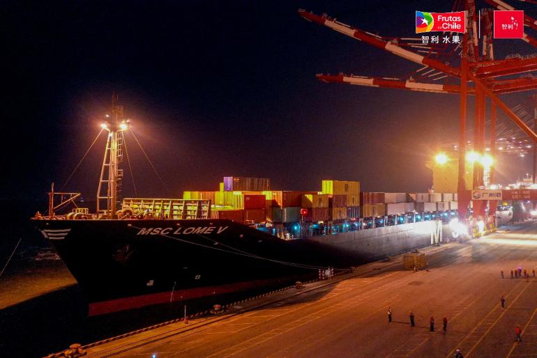 2025 年首艘智利 " 车厘子快线 " 抵达广州南沙港。受访者供图
