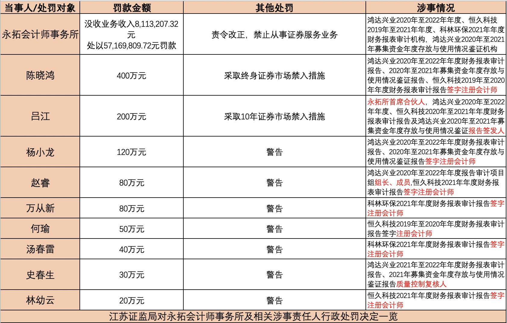 根据江苏证监局披露的罚单,江苏证监局网站公开对永拓及包括首席合伙人在内的9名注册会计师的行政处罚、市场禁入决定。