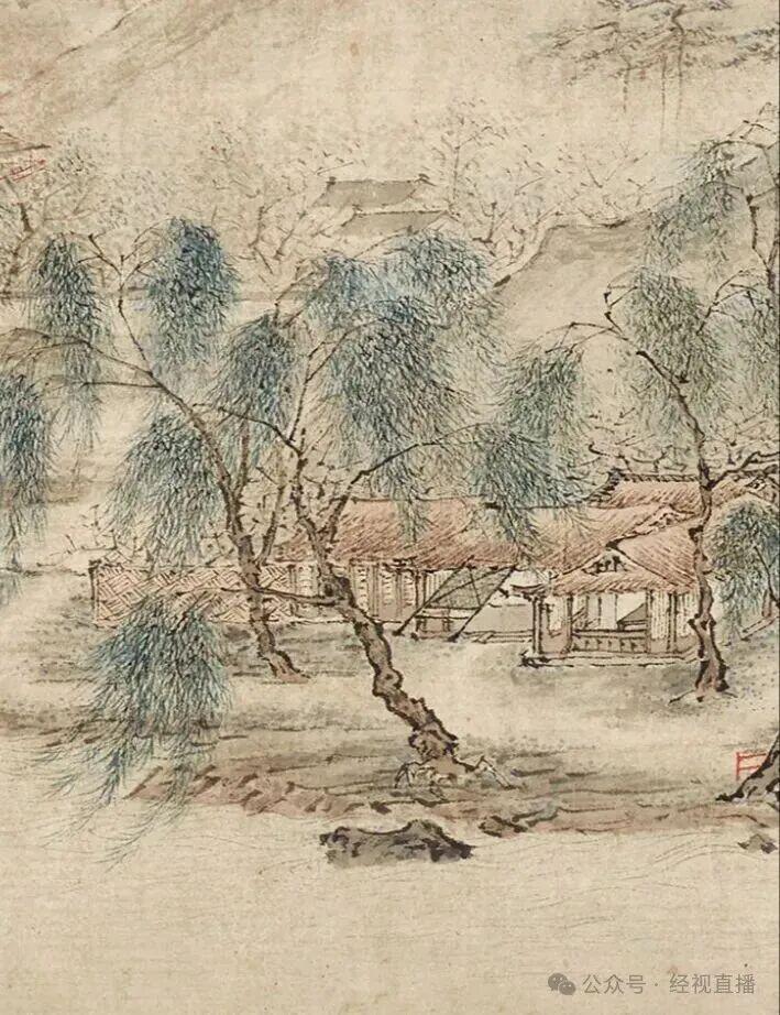 庞莱臣后人捐给南京博物院的明代仇英 《江南春》图卷(局部),2025 年出现在北京一拍卖公司预展中