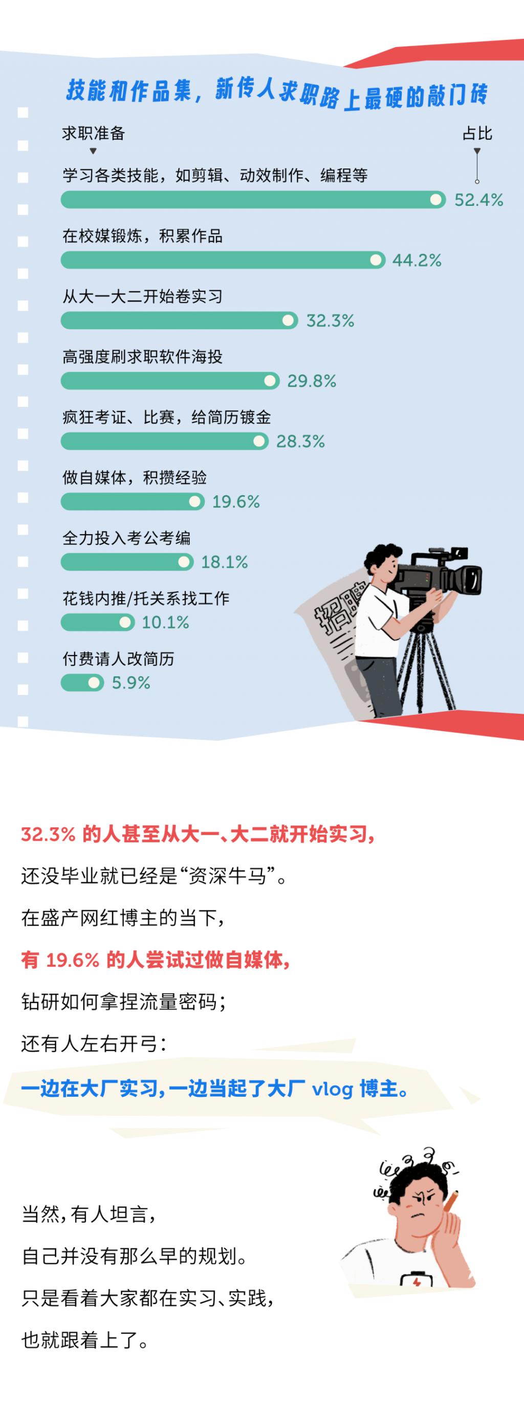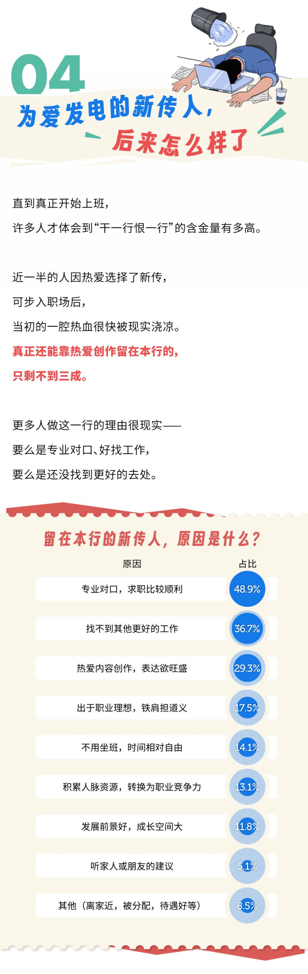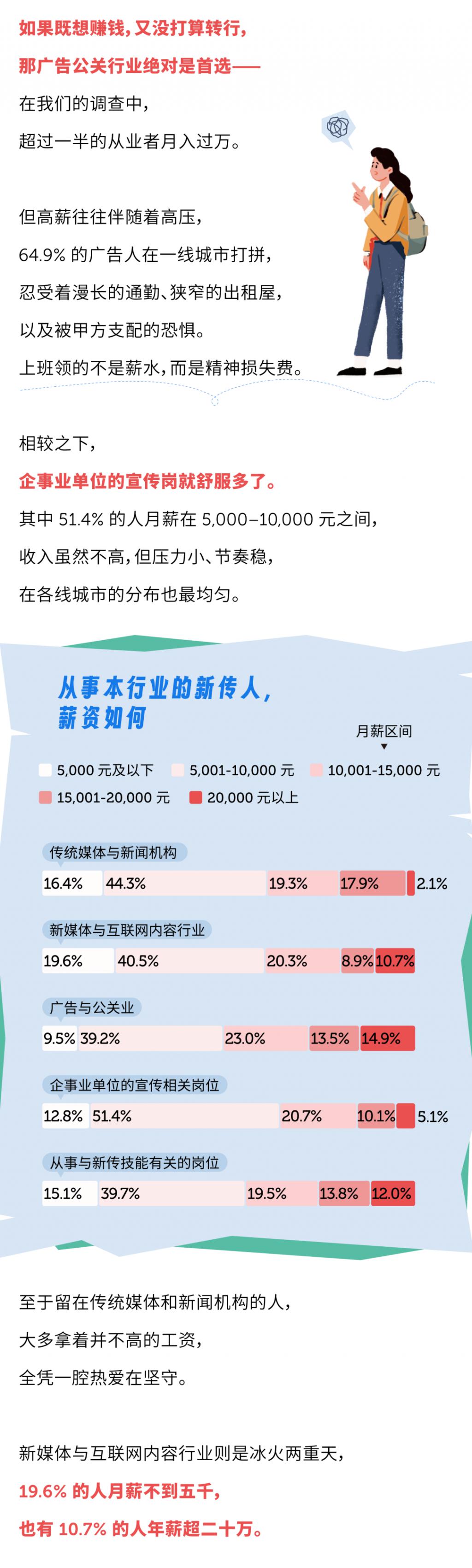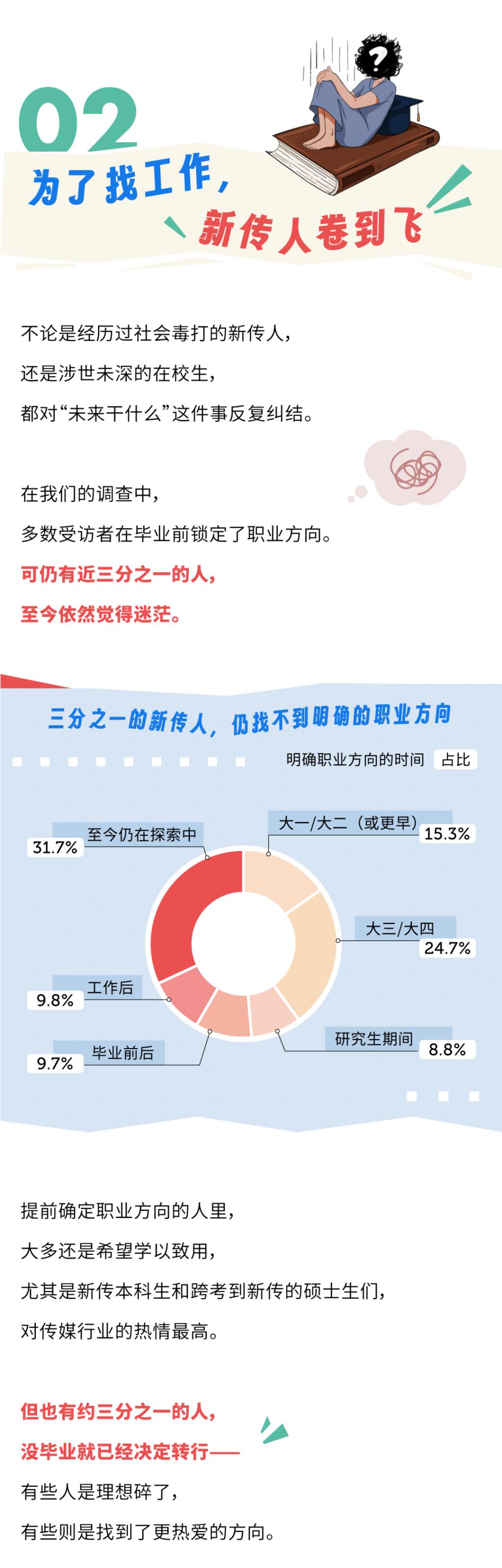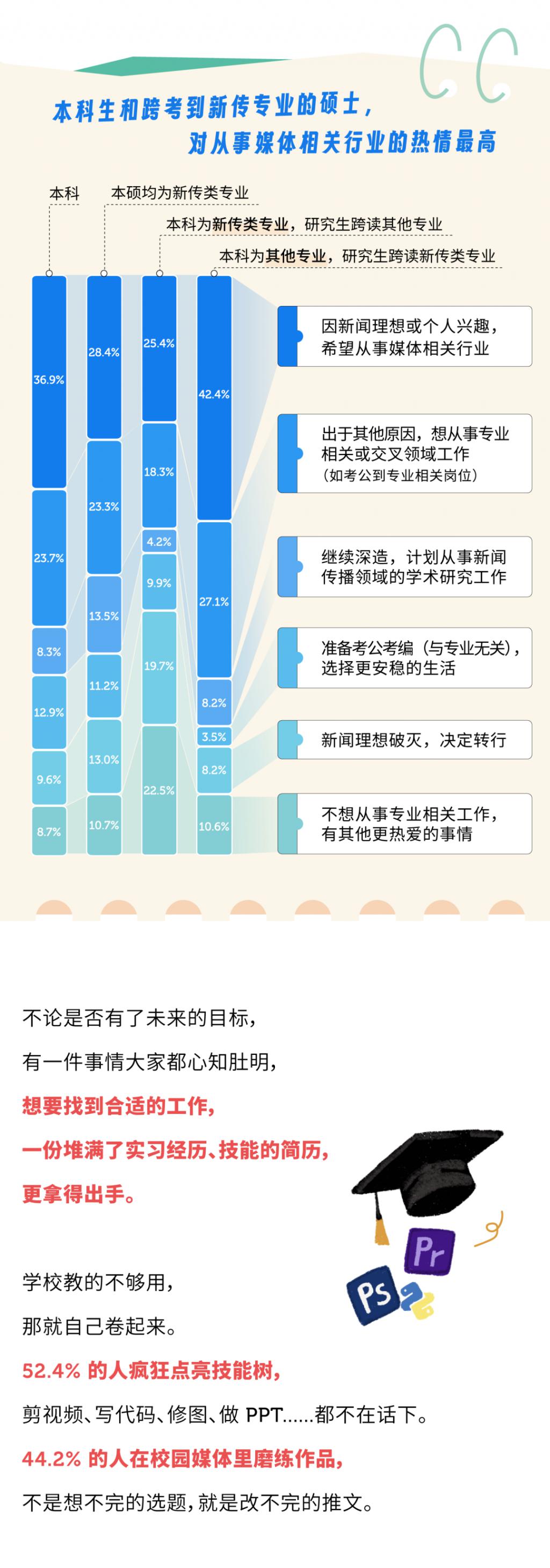 课堂里传授的是 " 铁肩担道义 " 的信条,但走出校园的象牙塔后,就业市场关心的往往是爆款和流量。这份落差,是许多新传人共同的困惑。很多人的一腔热血,也逐渐在现实中平静冷却。