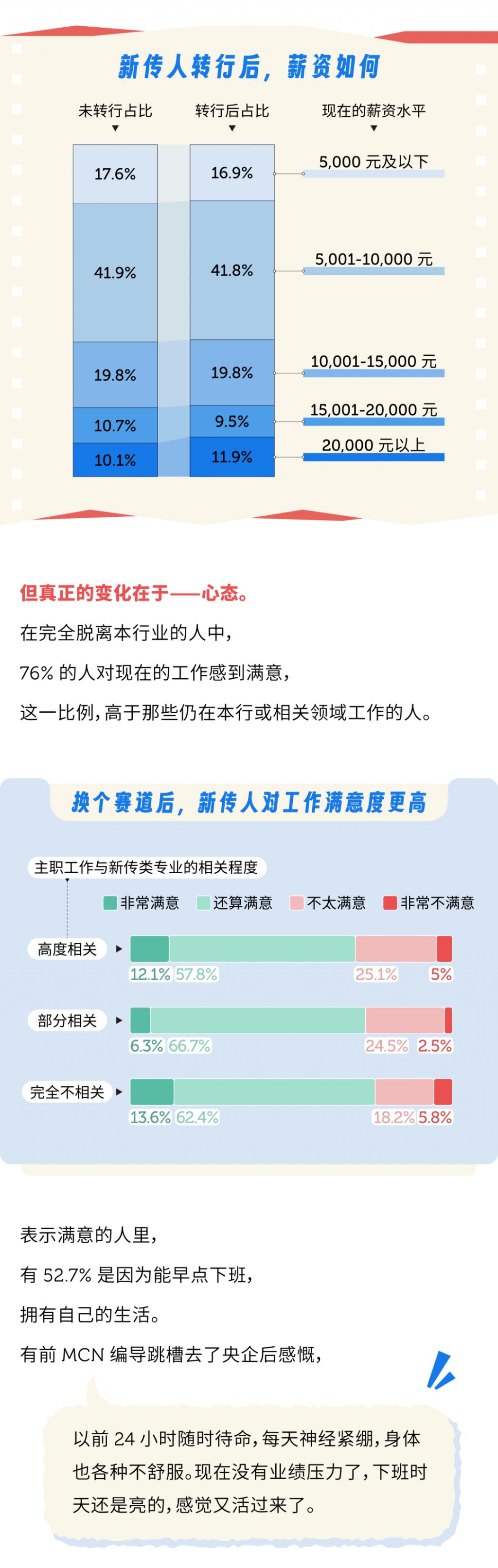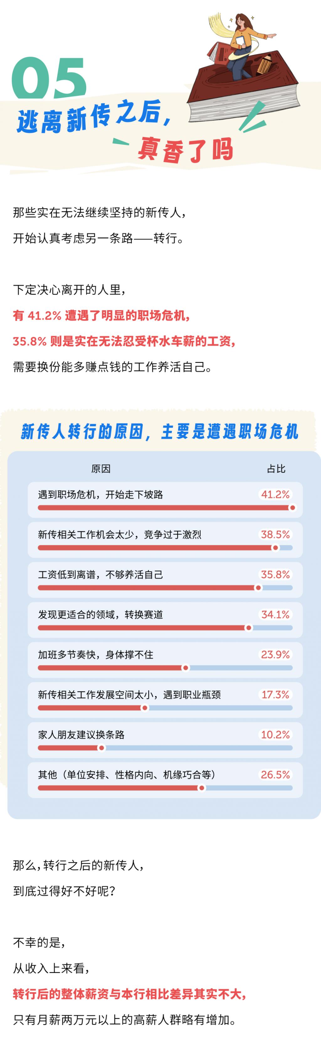 不过,人生没有倒档,也没有哪条路必须一条道走到黑。有新传人早早转行,从此和自己学了多年的专业再无瓜葛;也有人非科班出身,却在新闻一线摸爬滚打,凌晨蹲点采访、极限赶场交稿,累也甘之如饴。