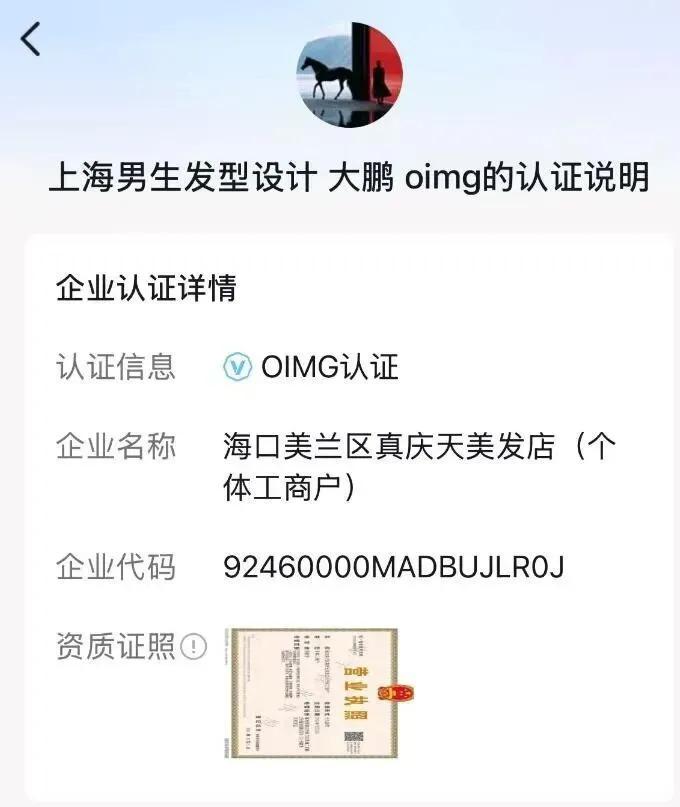 与小李加微信,沟通并预约烫发时间的主体同名抖音号认证的企业地址位于海南海口。