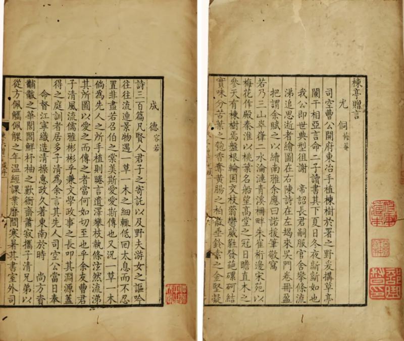 据介绍,新见康熙刻本《楝亭赠言》系《楝亭图》全部题咏的文字汇编,为曹寅在扬州诗局所刊印,主要收录了围绕江宁织造曹玺手植楝树、构筑楝亭而创作的题咏作品。 该文献目前由南京藏家李瑞华收藏,收录 189 位清初名宦文士的 9 篇赋、序、记和 262 首诗词,凡 271 篇作品,远超此前学界所知,彻底弥补了《楝亭图》题咏辑佚不全的缺憾,为研究曹氏家族的社会网络与文化影响力提供了第一手资料。