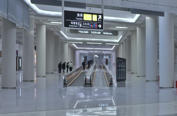 ▲副中心枢纽的地铁换乘通廊内设置有自动扶梯。新京报记者 王贵彬 摄