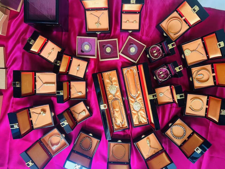 直至年尾,Patrick 已经在老铺黄金消费了 9 件商品,花费达六位数。" 我买的老铺,不一定极贵但有特色有代表性,比如刻龙印章、烧蓝工艺的七子葫芦、福字对印、烧蓝毛笔等,都能做到日常使用,工艺也是其他品牌难以模仿。"