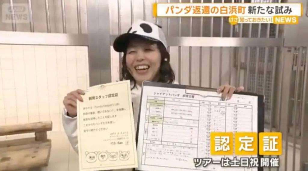为吸引游客,该乐园从上个月开始推出 " 大熊猫饲养员体验活动 "。参加活动的游客穿着饲养员制服、戴着熊猫图案的帽子,亲身体验饲养员的工作,包括对 " 大熊猫 " 进行模拟抽血等,活动中的 " 大熊猫 " 由工作人员扮演。并且,活动结束后可获得饲养员的证书。