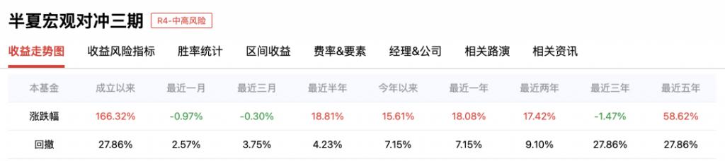 wind 数据显示,半夏投资的多数产品近期已不再更新净值。而据私募排排网,其正在运作的产品之一 " 半夏宏观对冲三期 " 成立以来的收益率约为 166.32%,但近三年该产品收益率为 -1.47%,跑输沪深 300。中国证券投资基金业协会官网信息显示,目前半夏投资的管理规模在 50 亿 -100 亿元之间,尚未回归百亿阵营。