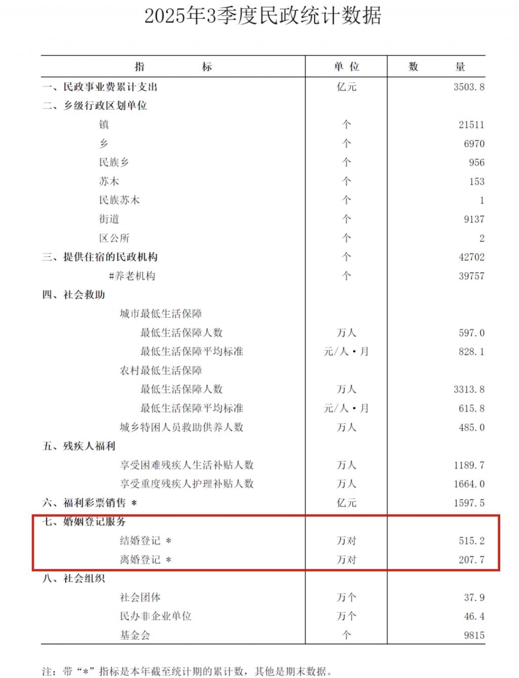 民政部官网公布数据显示,2025 年前三季度结婚登记 515.2 万对