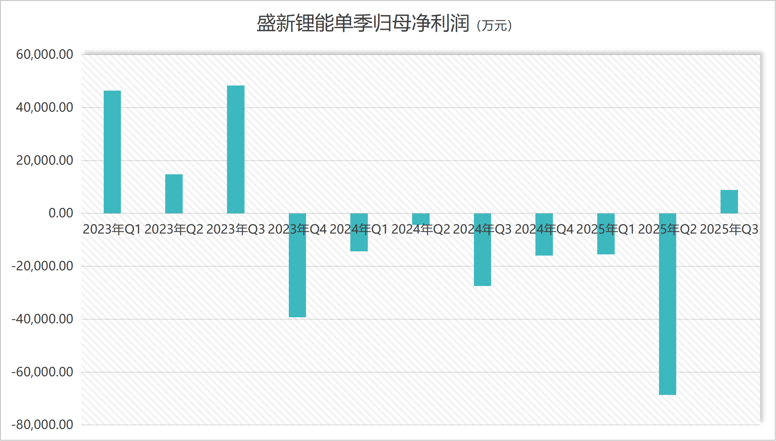 自2023年碳酸锂步入下行周期以来,盛新锂能业绩大幅骤降。公司2023年和2024年营收降幅分别为34%和42%;其归母净利润由2022年的55.52亿元降至2023年的7.02亿元,2024年亏损6.22亿元,2025年前三季度亏损7.52亿元。