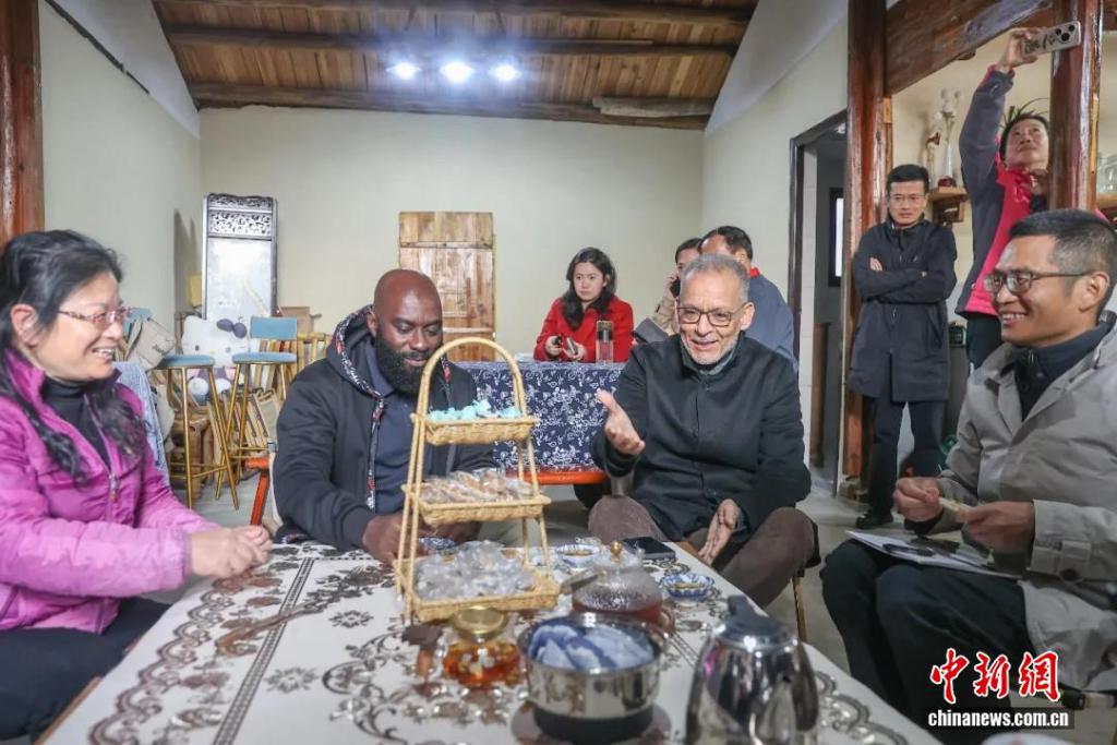 2025 年 11 月 17 日,穆罕默德 · 曼苏里 ( 前排右二 ) 跟随 " 人权行动看中国 · 2025" 江西行活动参访团来到南昌县塔城乡湖陂村乡村振兴示范区,在 " 新村民 " 刘红 ( 左一 ) 家中与她面对面交流。刘力鑫 摄
