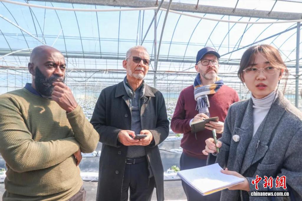 2025 年 11 月 21 日,穆罕默德 · 曼苏里 ( 左二 ) 跟随 " 人权行动看中国 · 2025" 江西行活动参访团来到赣州市于都县潭头村的蔬菜大棚基地,了解富硒蔬菜产业发展情况。刘力鑫 摄