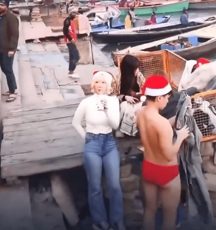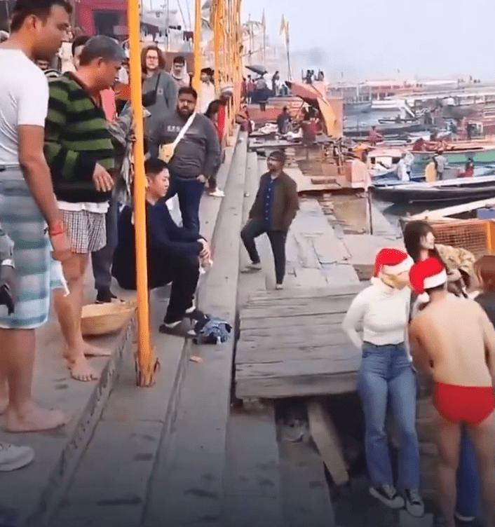 据当地时间 1 月 1 日的消息称,流传在网上的短视频显示,几名日本游客头戴鲜红色圣诞帽,身穿短裤、泳装等较为暴露的服饰,在恒河岸边兴致勃勃地玩耍,有人甚至脱掉外衣仅穿泳裤准备下水游泳。