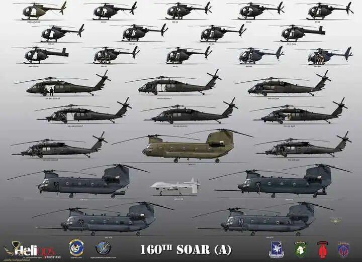 ▲美国第 160 特种航空团的各型直升机," 支奴干 " 是其重要装备
