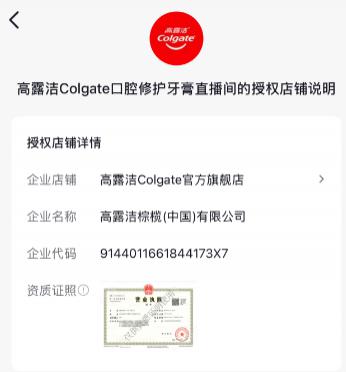 另据都市现场,记者发现,社交平台账号 @高露洁 Colgate 口腔修护牙膏直播间首页显示其为旗舰店授权账号,其直播间售卖的产品也均为高露洁 Colgate 官方旗舰店产品。记者向官方旗舰店的客服询问此事,客服表示已经有专员正在处理中。