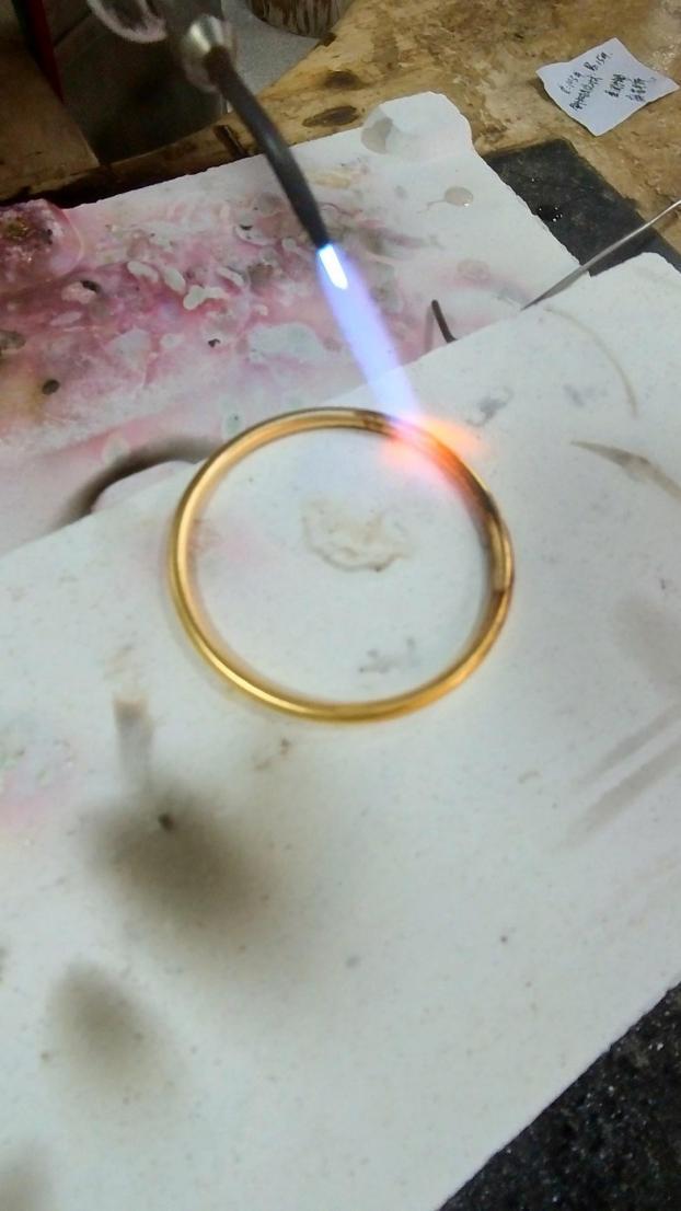图为黄金手镯抹了洗洁精后,在硬火灼烧下会变黑。图片来源:广州 · 日报