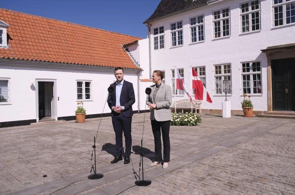 2025 年 4 月 27 日,在丹麦哥本哈根附近的马林堡,丹麦首相弗雷泽里克森(右)与格陵兰岛自治政府总理延斯 - 弗雷德里克 · 尼尔森共同会见记者。新华社记者张玉亮摄