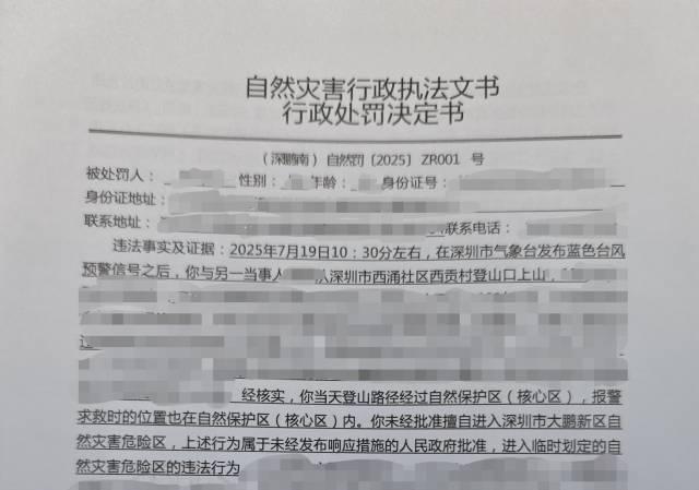 国家应急广播此前报道,在 2025 年 7 月台风 " 韦帕 " 蓝色预警生效期间,两名游客擅自进入自然灾害危险区登山并最终被困。救援成功后,大鹏新区依法对二人分别处以 5000 元罚款。这张罚单成为全国首张针对违反自然灾害防治综合法规的行政处罚单。