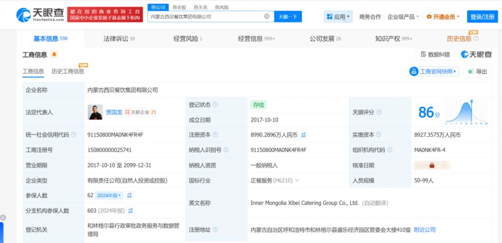 他的朋友圈证实了传闻,西贝计划在 2026 年第一季度关闭 102 家门店,涉及约 4000 名员工,相当于总门店数的三成。天眼查数据显示,西贝的运营主体是内蒙古西贝餐饮集团,成立于 2017 年 10 月,注册资本约 8990 万人民币,贾国龙是法人及实控人。